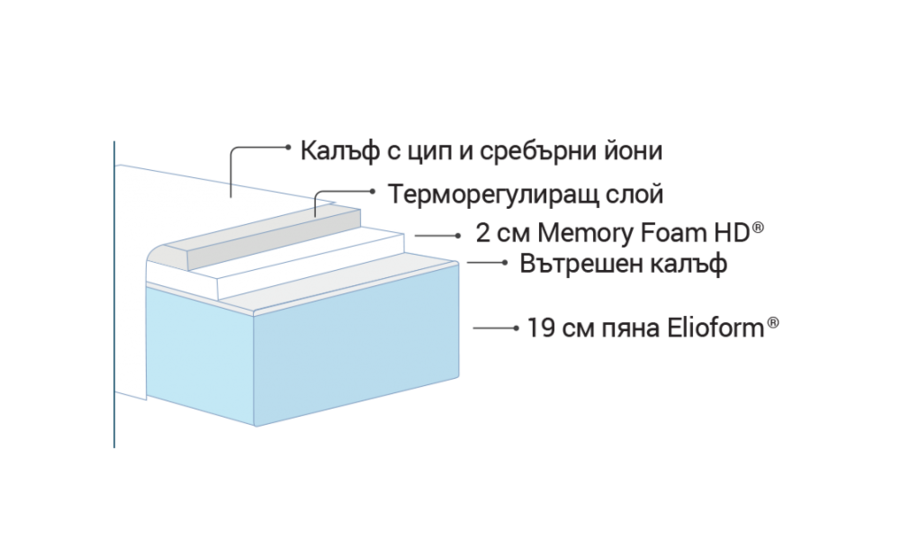 Среднотвърдият матрак Silvercare предлага балансирана твърдост и допълнителен комфорт с мемори пяната Memory Foam HD от едната страна на матрака. Тя реагира първо на натиск, а после на топлина - особено важно в зимните месеци, когато температурата в помещението е по-ниска. При матраците на Magniflex с Memory Foam HD® ще усетите отпускане веднага след като легнете. Този материал разпределя равномерно тежестта на тялото, което облекчава раменете, кръста и краката Ви.