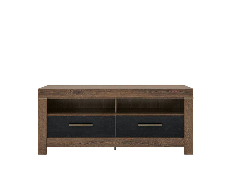 Плотът на шкафа е идеален за поставяне на телевизор с размери, които отговарят на стандартите на повечето модели на пазара, а също така предлага достатъчно място за декорации и допълнителни елементи. Крака от метал придават стабилност и допълват модерен изглед на мебела.