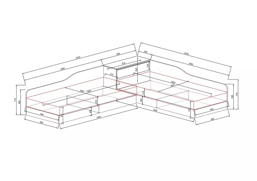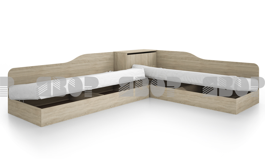 Ъглови легла СИТИ 2001 са практично и функционално решение за обзавеждане на спални и детски стаи. Те са предназначени за еднолицеви матраци с размер 82х190 см, като разполагат с вграден повдигащ механизъм, осигуряващ удобен достъп до просторни подматрачни пространства за съхранение. Допълнителната ракла осигурява още повече място за подреждане на вещи, като е идеална за спално бельо, завивки или други необходими аксесоари. Моделът е проектиран с изчистен и съвременен дизайн, който лесно се съчетава с различни интериорни стилове.