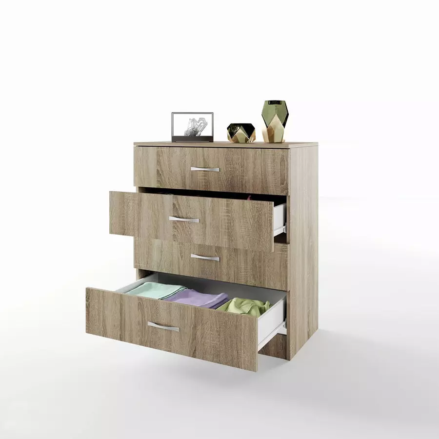 Скрин СИТИ 3003 е стилно и функционално допълнение към всяка спалня, дневна или коридор. Изработен от 16 мм висококачествено ПДЧ, той съчетава модерен дизайн с практичност. Моделът разполага с четири просторни чекмеджета, които осигуряват достатъчно място за съхранение на дрехи, бельо, аксесоари или други вещи, като същевременно запазват подредеността в помещението.