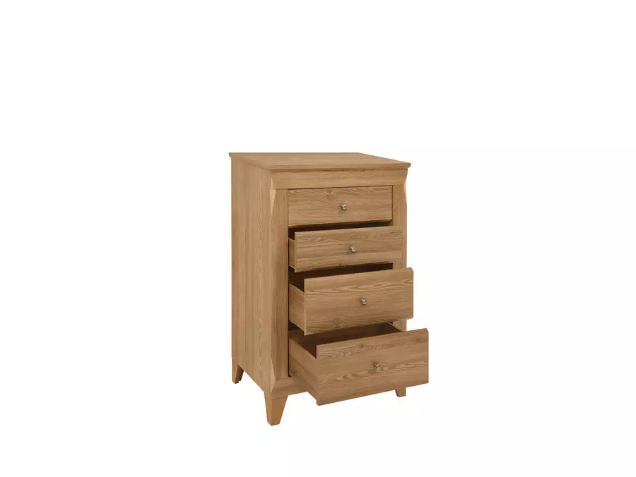 Скрин БЕРГЕН KOM4S е елегантно и функционално решение за вашия интериор. Изработен от 18 мм ПДЧ и MDF, този скрин предлага четири чекмеджета за удобно съхранение на лични вещи и аксесоари. С плавно затваряне на чекмеджетата, продуктът осигурява лесна и безшумна употреба, което допринася за по-дълготрайното му използване. Модерният и изчистен дизайн на БЕРГЕН се вписва във всяко помещение и може да бъде съчетан с други мебели от същата колекция, за да създадете единен стил в дома си.
