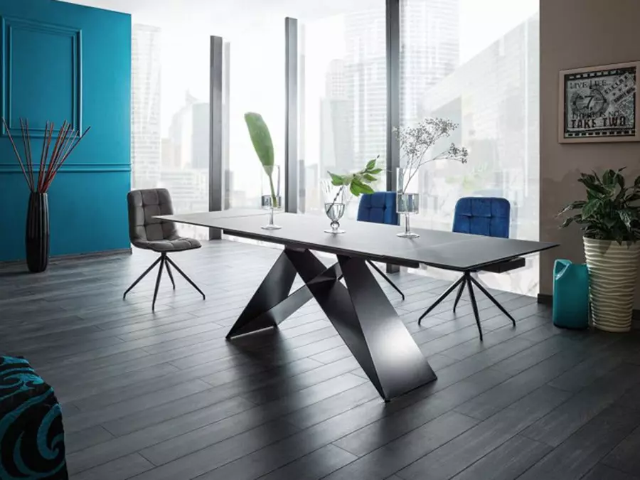 Трапезната маса УЕСТИН I е елегантен и функционален избор за всяка трапезария, благодарение на разтегателния механизъм, който позволява индивидуално разтягане от двата края. Плотът на масата е изработен от матово закалено стъкло с дебелина 11 мм, което я прави стабилна и устойчива на удари и надрасквания. С разтегателната функция тя може да се удължи от 160 см до 240 см, осигурявайки удобно място за до 12 човека, което я прави идеална за големи семейни събирания и специални поводи. Краката на масата са изработени от стомана, което добавя модерна нотка и допълнителна стабилност. Това съчетание от стил и практичност я прави перфектен избор за всяко съвременно жилище.