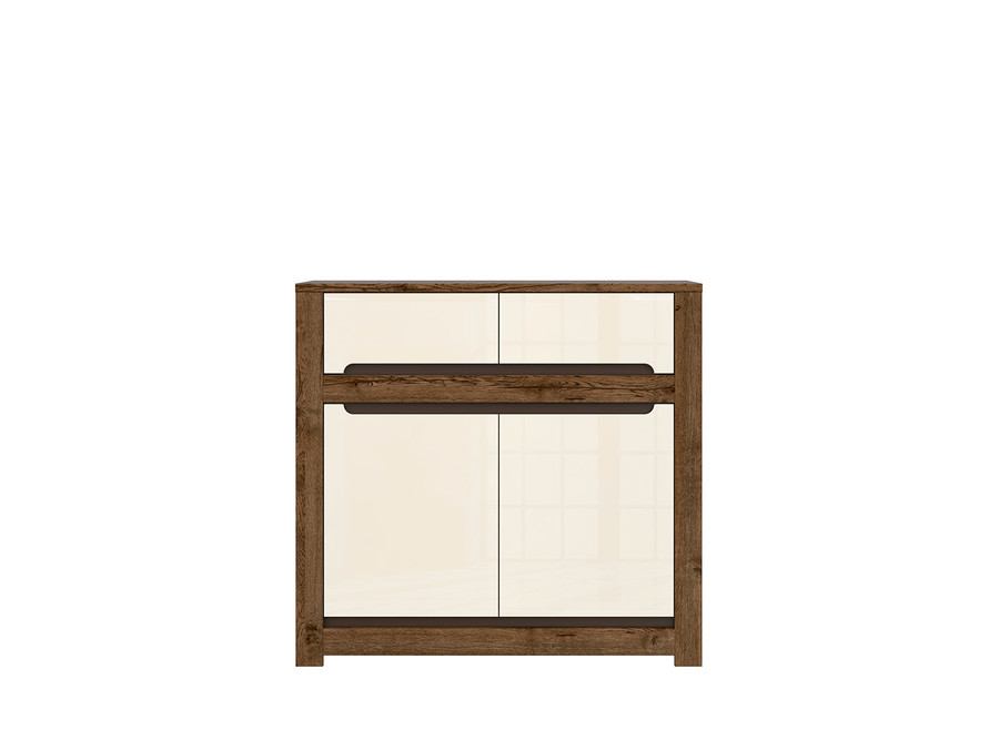 Скрин РУСО KOM2D2S е елегантен и функционален мебелен елемент, който ще внесе изтънченост и практичност във всяка спалня, коридор или хол. Със своите две врати и две чекмеджета, този скрин предлага достатъчно пространство за съхранение на различни предмети, като същевременно запазва изчистен и модерен външен вид. Вратите и чекмеджетата са снабдени с механизъм за плавно затваряне, което осигурява безшумно и лесно отваряне и затваряне. Изработен е от висококачествени материали – МДФ и ПДЧ с дебелина 18 мм, които осигуряват отлична стабилност и издръжливост на скрина.