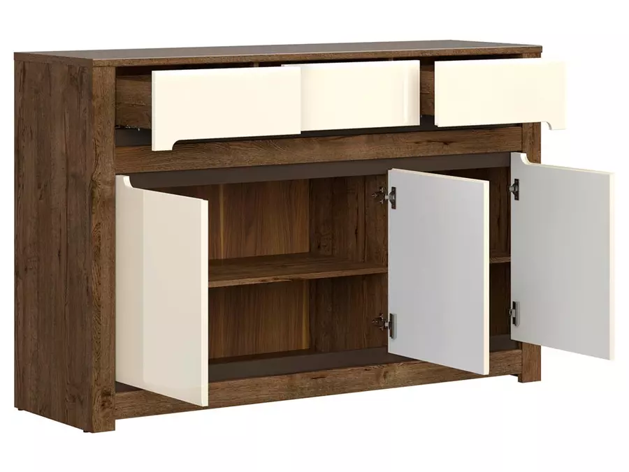 Скрин РУСО KOM3D3S е стилен и изключително функционален мебелен елемент, който ще допълни интериора на всяка спалня, дневна или коридор. С три врати и три чекмеджета, този скрин предлага изобилие от място за съхранение, което го прави подходящ за съхранение на дрехи, лични вещи или други предмети. Вратите и чекмеджетата са оборудвани с механизъм за плавно затваряне, който осигурява лесно и безшумно отваряне и затваряне, придавайки допълнително усещане за комфорт и удобство при употреба. Изработен е от висококачествени материали – МДФ и ПДЧ с дебелина 18 мм, които осигуряват отлична стабилност и издръжливост на скрина.