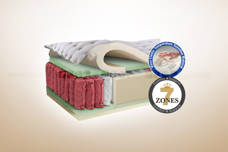 Матрак Сиана Силвър 120/190 двулицев бял. Изработен със специален капитониран текстил, Memory пяна, еластична пяна, 7 зонов Pocket System, 3D вентилационна лента, вътрешен калъф, цип.