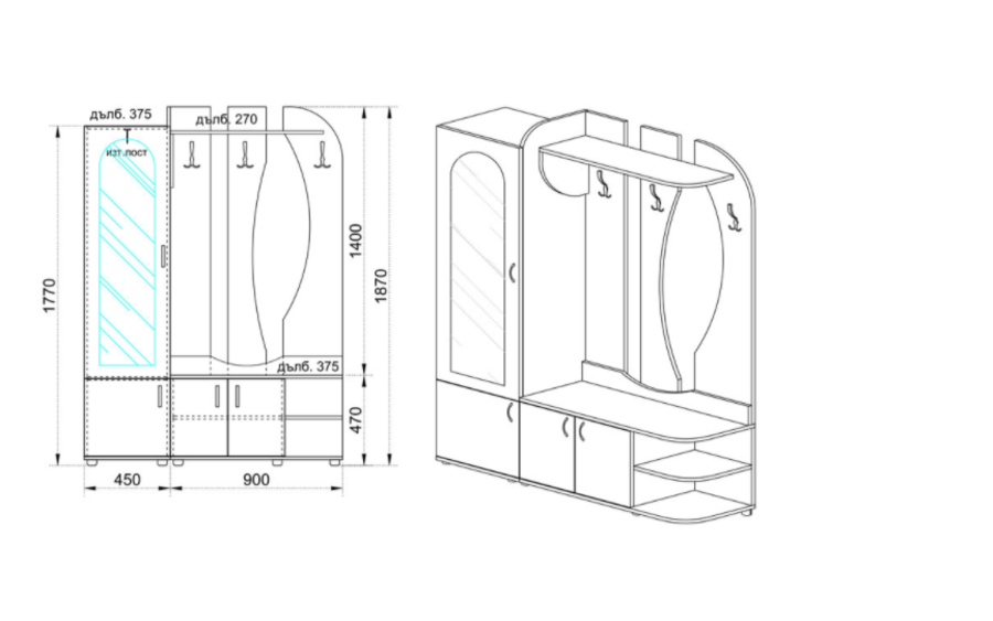 Антре СИТИ 4052 е идеално за компактни пространства и ще се впише добре във всяко съвременно жилище, като предлага както стил, така и полезност. Организирайте своето антре с удобство и елегантност, като същевременно се възползвате от оптималното пространство за съхранение на обувки и дрехи.