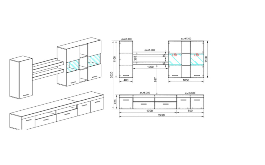 Шкафът е оборудван с LED осветление, което е включено в комплекта и създава топла и уютна атмосфера, подчертавайки неговата естетика и придавайки допълнителен уют на интериора. Вратите са с механизъм за плавно затваряне, което гарантира безшумно и безпроблемно затваряне, като предотвратява удари и осигурява дългосрочна употреба без повреди.