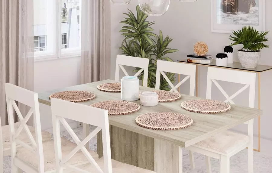 Със своя модерен и универсален дизайн, масата се вписва лесно в различни интериорни стилове – от класически до съвременни пространства, добавяйки елегантност и практичност на всяка трапезария или кухня.