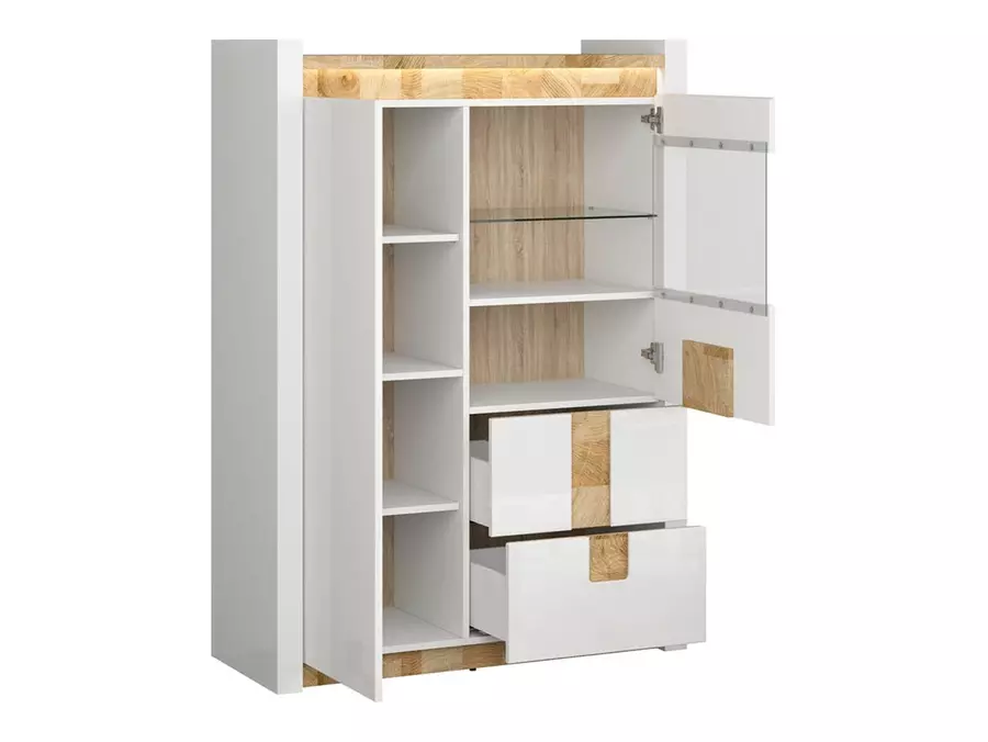 Със своя елегантен и изчистен вид, Витрина АЛАМЕДА REG1W1D2S е перфектно допълнение за всяко жилище, съчетавайки стил и функционалност. Тя ще добави естетика и удобство на Вашето пространство, като същевременно предоставя удобно място за съхранение и подредба.
