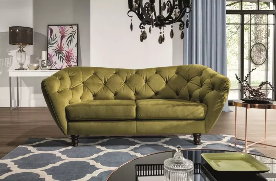 Диванът Венеция има аристократична визия, която е подчертано с мекото кадифе, в което е тапициран. Капитонираната облегалка добавя изисканост и лукс, подчертавайки уникалния му стил. Моделът предлага избор на текстили и цветове, което позволява лесно адаптиране към интериора на всяка стая.
