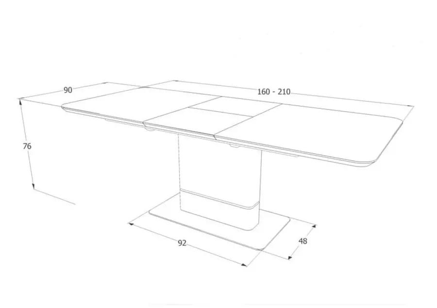 Трапезната маса ПАЛЛАС КЕРАМИК е еталон за съвременен стил и изключителна функционалност, която ще преобрази всяка трапезария с изтънчената си визия и здрава конструкция. С компактни размери от 160 см в прибрано състояние и възможността да се разтяга до 210 см, тя предоставя идеалното пространство за комфортни семейни обеди или официални събирания с приятели. С лесно разтягащ се механизъм, разположен в средата на плота, масата добавя 50 см допълнително пространство само с няколко прости движения.