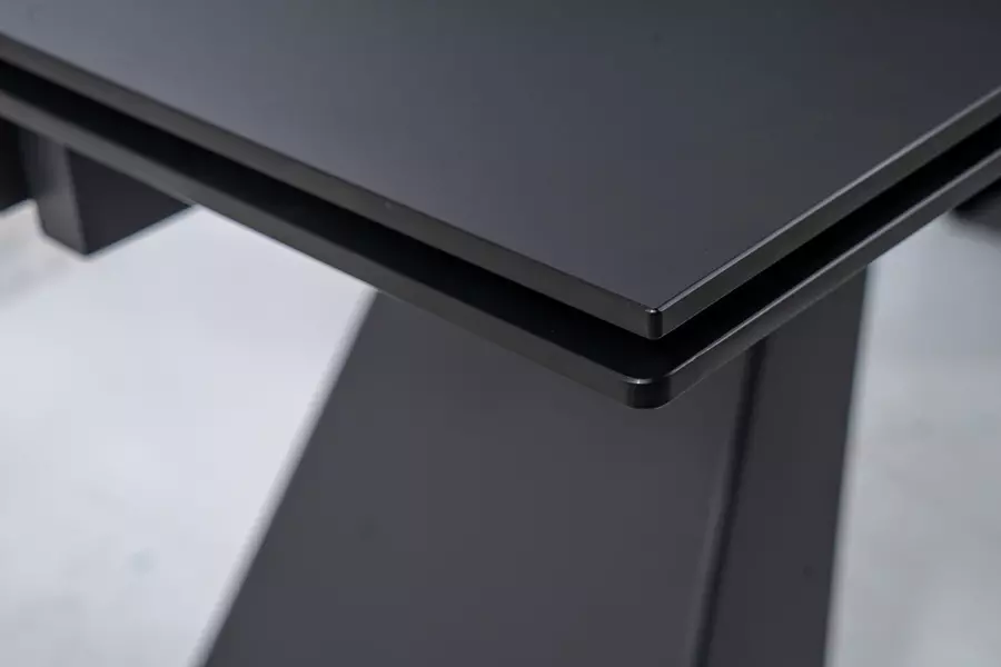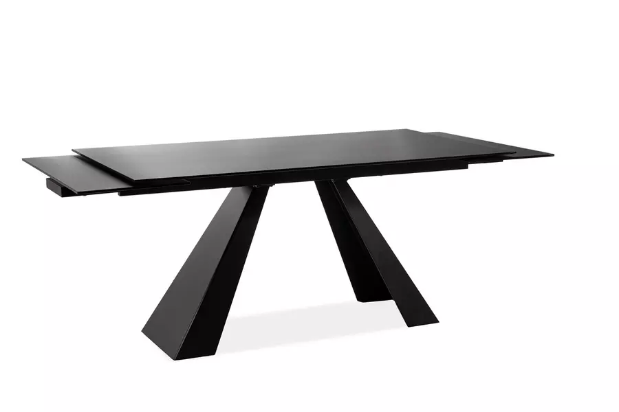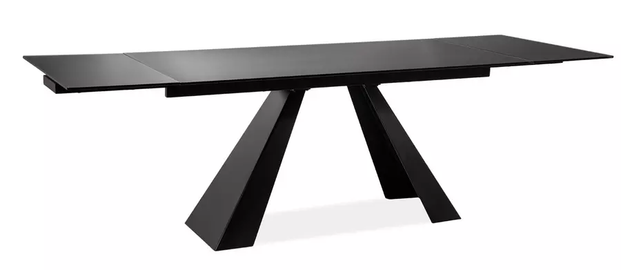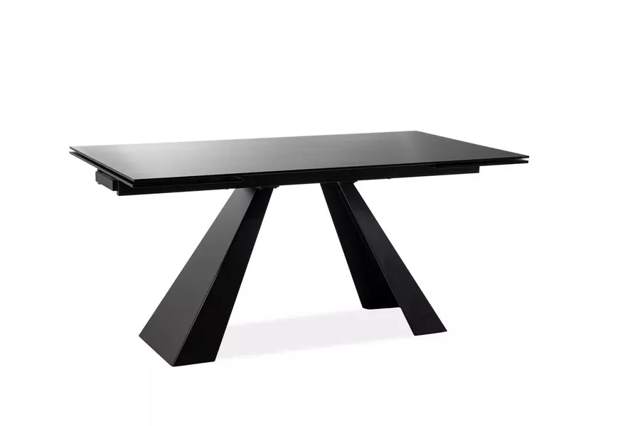Трапезна маса САЛВАДОРЕ съчетава елегантност и практичност, благодарение на модерния си дизайн и функционалност. Основата е изработена от здрав метал, осигуряващ стабилност, а плотът е от черно матово закалено стъкло, придаващо изтънчен вид и лесна поддръжка. В стандартно състояние масата е с дължина 160 см, но разполага с два индивидуални плота за разширяване, всеки с дължина 40 см, позволяващи удължаване до 200 см или 240 см в зависимост от нуждите. Максималното натоварване на плота е 60 кг.