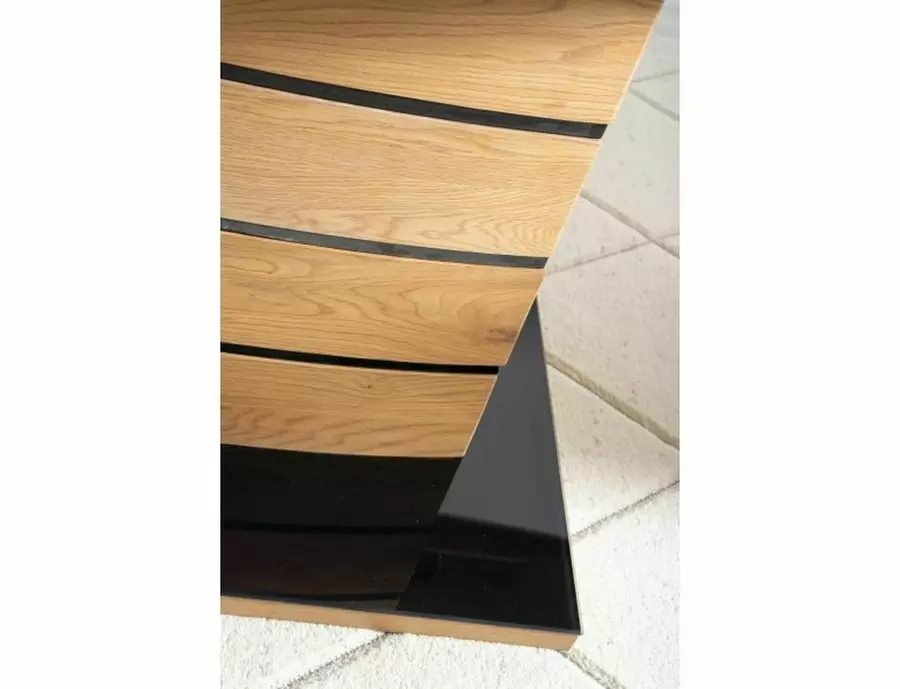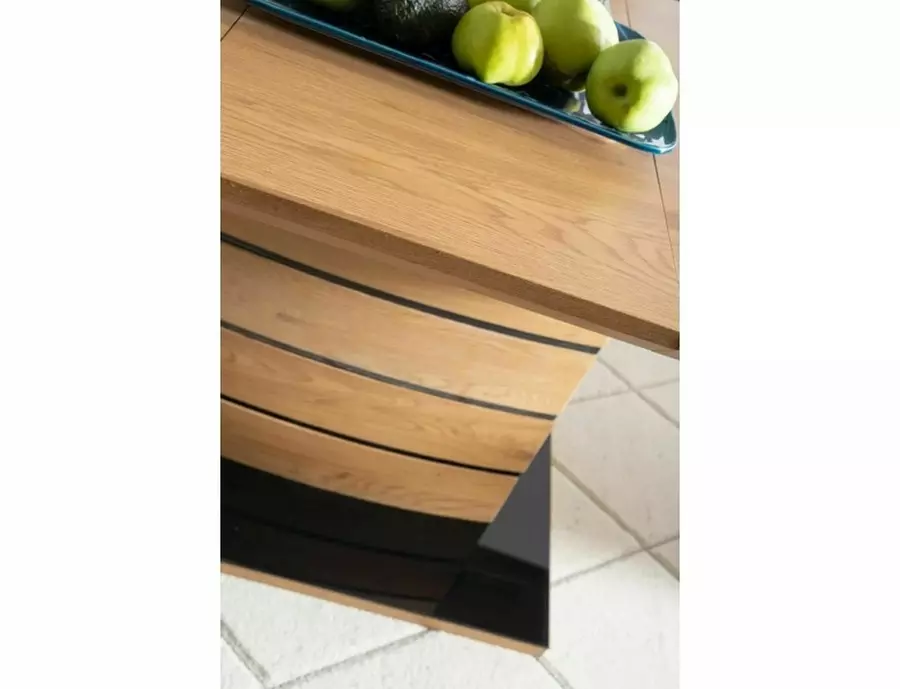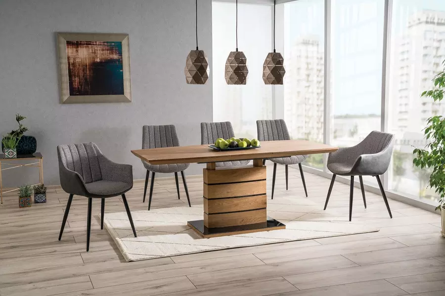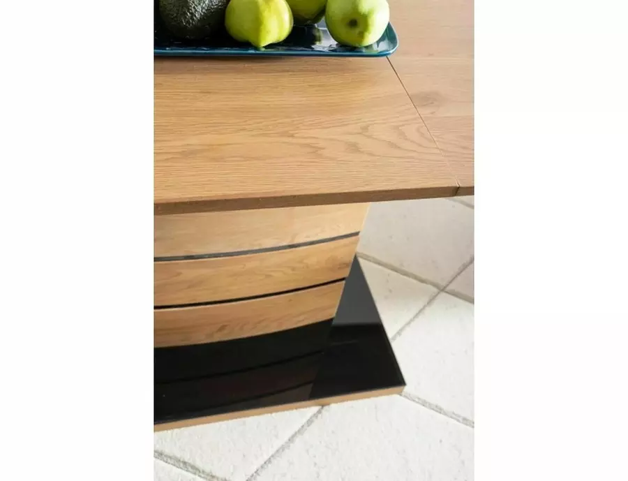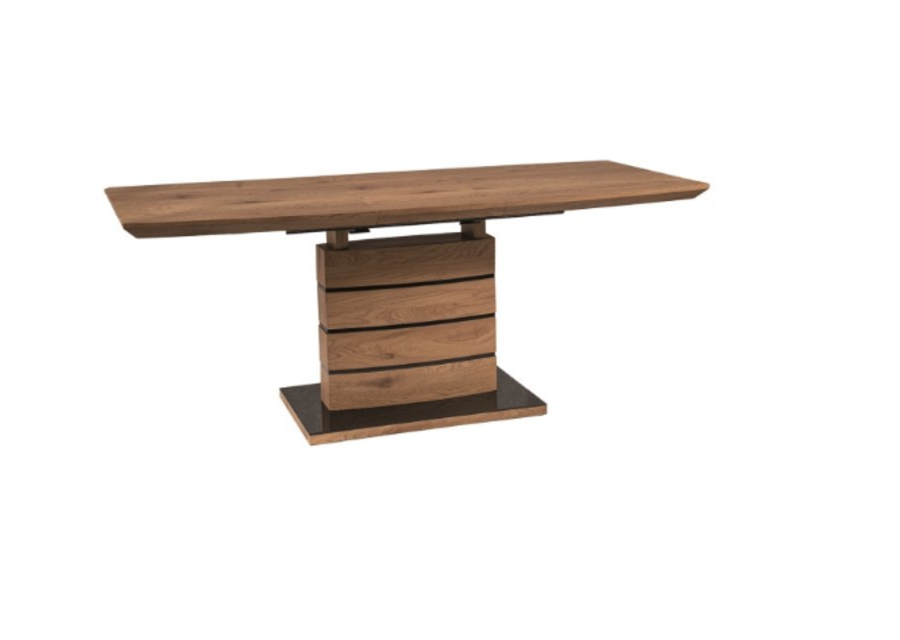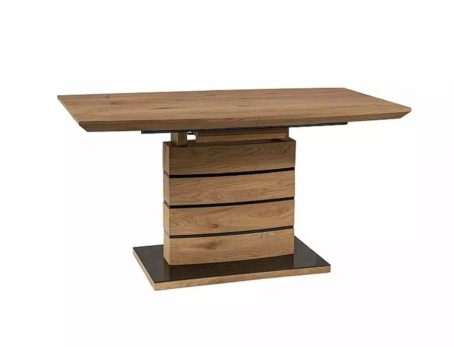 Трапезна маса ЛЕОНАРДО съчетава елегантност и функционалност в едно. Изработена е от плътни плоскости от дървесни влакна, допълнена с изискани детайли от закалено стъкло върху основата, които придават модерен и стилен акцент. В компактно състояние масата е с дължина 140 см, а с разтегателния механизъм достига до 180 см, осигурявайки достатъчно място за комфортното настаняване на 8 души. Здравата конструкция поддържа максимално натоварване до 80 кг, което я прави надежден избор за всяко събиране.