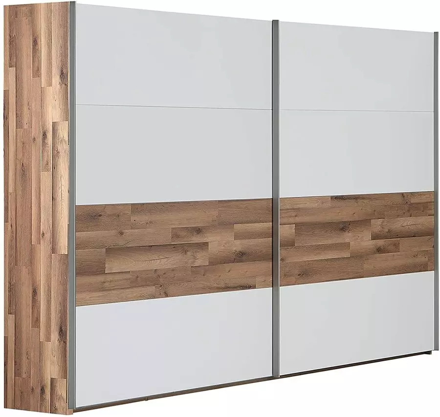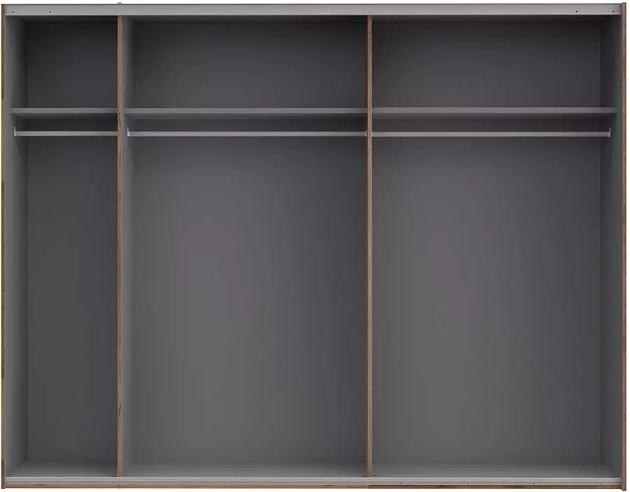 Гардеробът е с плъзгащи врати, което го прави перфектен за по-малки помещения, където традиционните врати може да не са толкова удобни. Плъзгащите врати осигуряват лесен и удобен достъп до вътрешността на гардероба, като същевременно спестяват място.