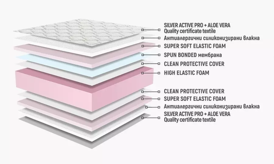 SILVER ACTIVE PRO + ALOE VERA заедно с антиалергични силиконизирани влакна в капитонажа завършват сваляемия калъф с делим цип. СИРЕНА УЛТРАФЛЕКС е BEST SELLER сред търсещите балансирана ортопедичност при оптимално съотношение между цена и качество.