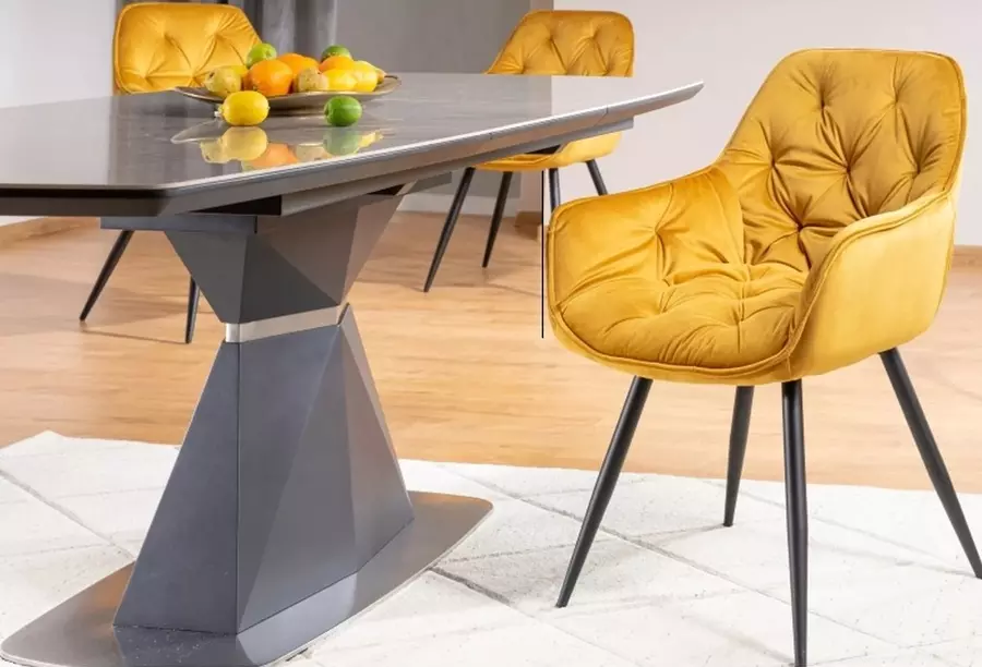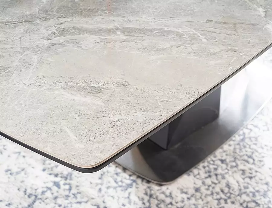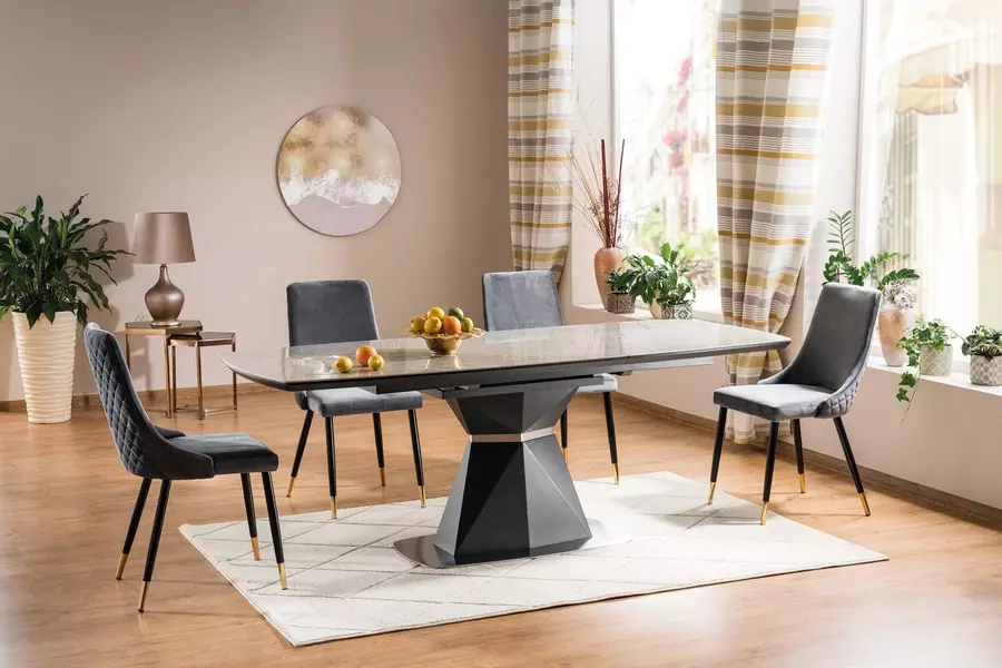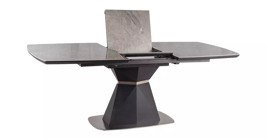 Трапезна маса КОРТЕС КЕРАМИК предлага изискана визия и функционалност, която я прави идеална за съвременния дом. Със своя разтегателен механизъм и дължина на плота в разтегнато положение от 210 см, масата осигурява достатъчно място за големи семейни събирания или специални поводи.