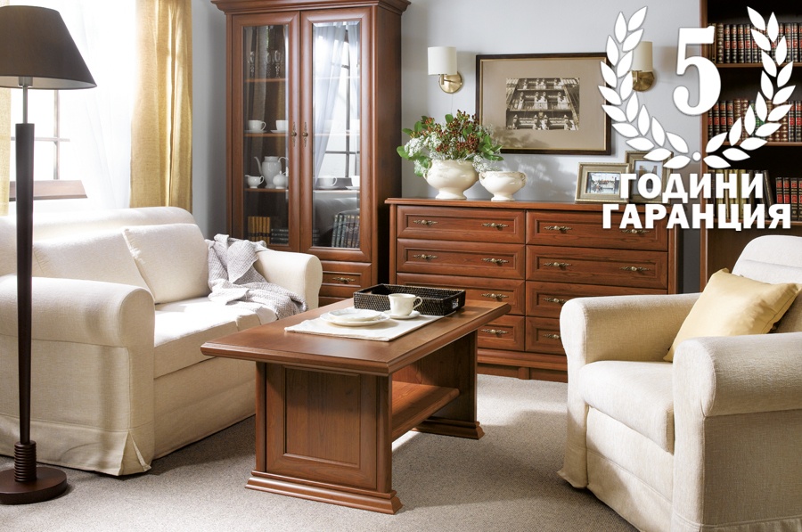 Комплект за обзавеждане на всекидневна КЕНТ е създаден за любителите на класическия интериор и напомня за непреходната елегантност от стари времена. Състои се от: