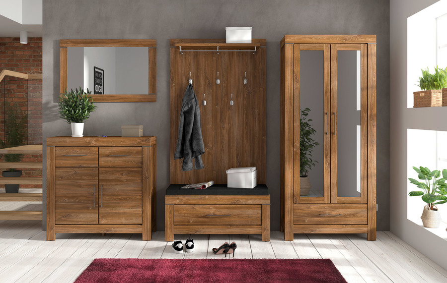 Комплект за обзавеждане на антре ЖЕНЕВА е изработено от 18мм. ПДЧ корпус, вратички и чела на чекмеджета от МДФ. Той включва: