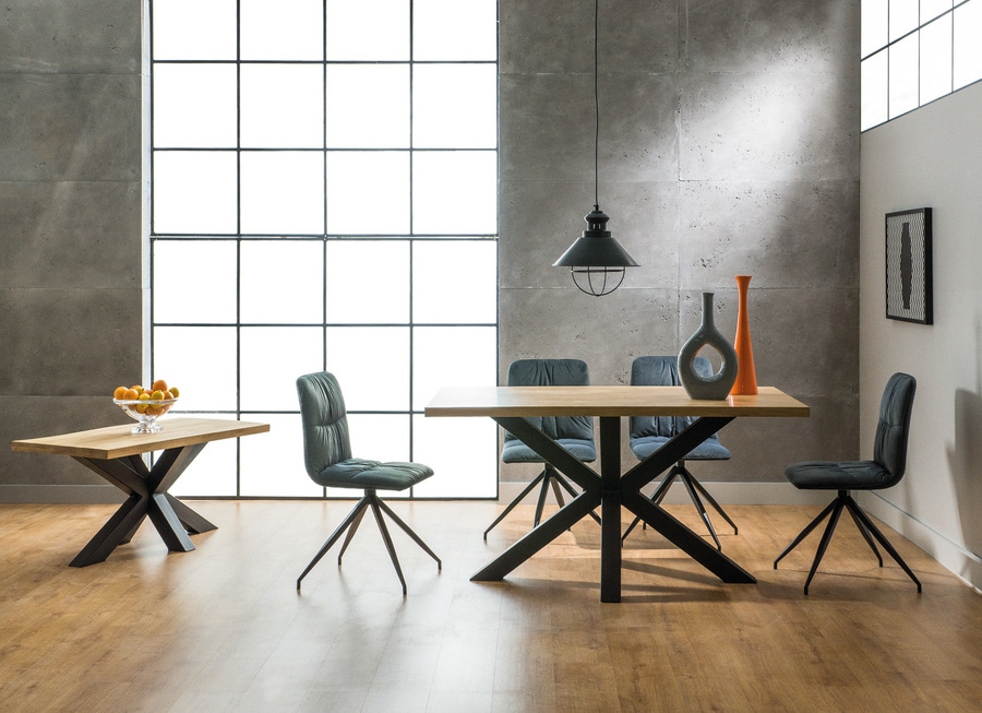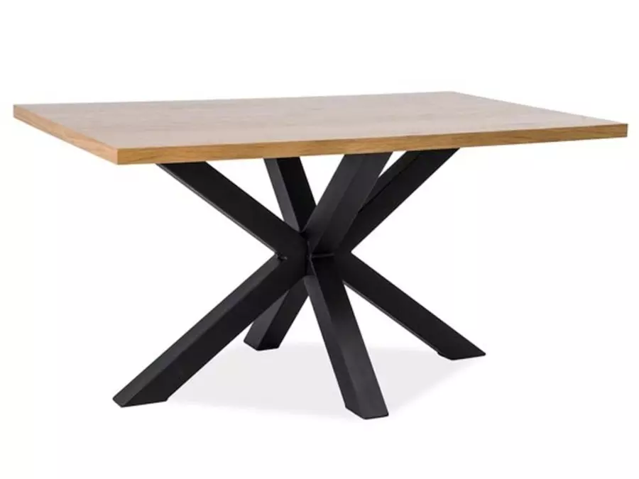 Интересният дизайн на основата с пресичащи се линии създава впечатляващ акцент, който привлича вниманието и добавя динамика към пространството. Масата е подходяща както за семейни вечери, така и за посрещане на гости, като осигурява комфорт и практичност.