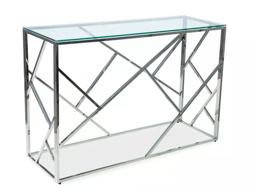 Конзолна маса ЕСКАДА C, изработена със стъклен плот върху метална хромирана основа. Допустими са отклонения или несъответствия от действителните цветове на продукта, с тези на екрана на Вашето устройство.