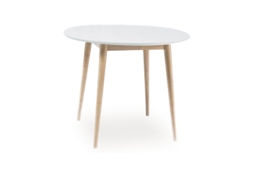 Плотът е изработен от здрава МДФ плоскост в матово бяло. Краката на масата са изработени от здрава избелена дъбова дървесина.