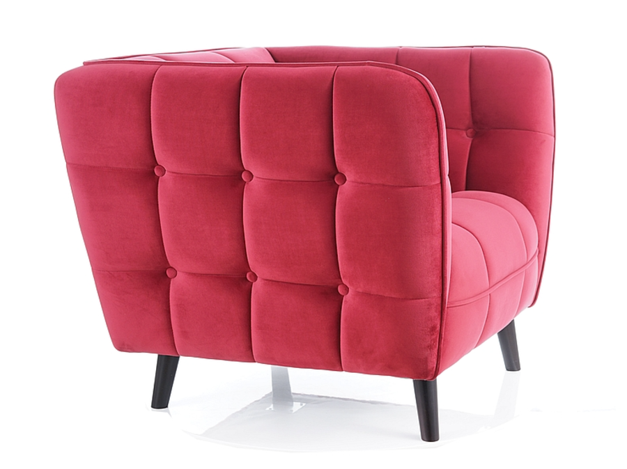 Фотьойл КАСТЕЛО 1 впечатлява със своята стилна визия и изключителен комфорт. Изработен е от висококачествен текстил, който е издръжлив и лесен за поддръжка, като същевременно предлага приятно усещане при допир. Цветът Bluvel 59 в бордо добавя топлина и елегантност към интериора, създавайки уютна и изискана атмосфера. Кракът в цвят венге придава завършеност на дизайна и осигурява стабилност и дълготрайна здравина. Фотьойл КАСТЕЛО 1 е перфектно решение както за всекидневната, така и за по-изискано пространство, където съчетава практичност и естетика.