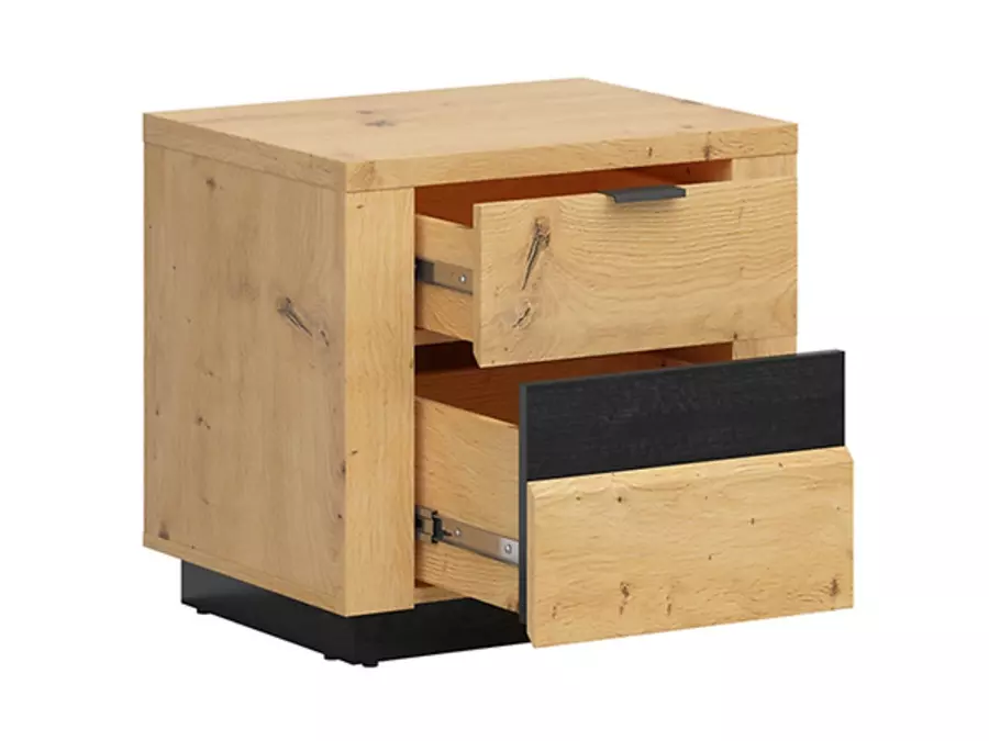 Размерите на нощно шкафче Остиа KOM2S са добре балансирани и позволяват лесно комбиниране с различни интериорни решения. Ширина 54 см, височина 51.5 см и дълбочина 42 см осигуряват достатъчно място за лампа, часовник или декоративни елементи, без да се натоварва пространството. Материалите, от които е изработено, допринасят за естетичен външен вид и устойчивост при ежедневна употреба.