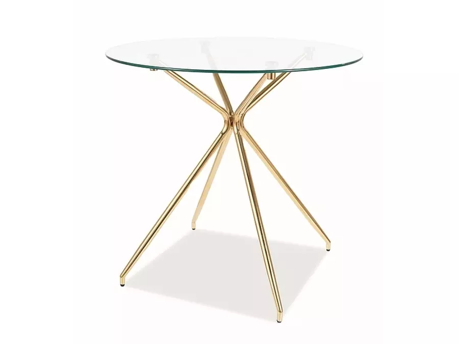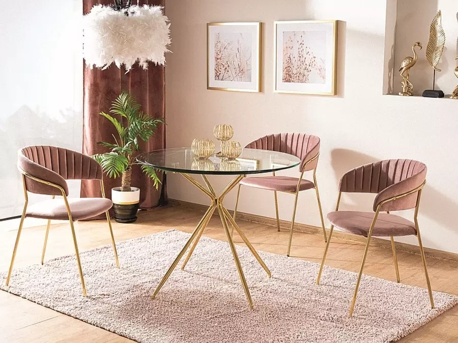 Със своята визия трапезна маса Азалия ще внесе стил във вашата трапезария. Изработена от метална основа в златист цвят и плот от закалено стъкло.