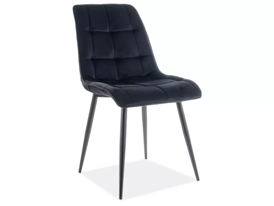 Трапезният стол ШИК е стилно и модерно решение, което съчетава комфорт и функционалност. Седалката е изработена от плътна пяна и висококачествена материя тип кадифе, осигуряваща мекота и удобство при продължително използване. Черните матови крака от метал добавят елегантност и гарантират стабилност и дълготрайност. Максималното натоварване на стола е 120 кг, което го прави надежден избор за ежедневна употреба. Идеален е за трапезарии, кухни или модерни интериорни пространства, добавяйки изтънченост и стил към всяка обстановка.