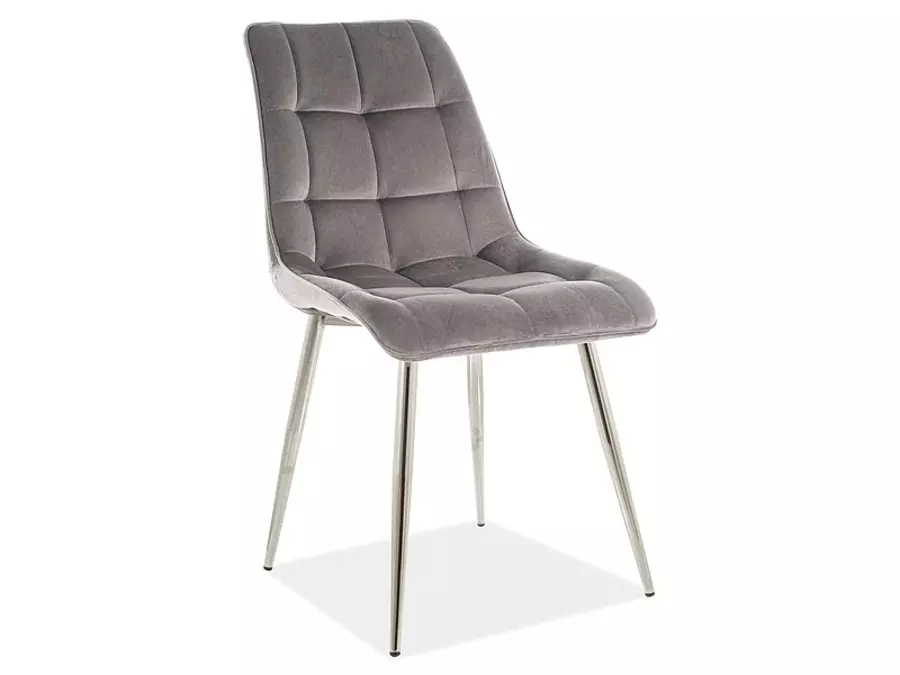 Трапезният стол ШИК е стилно и модерно решение, което съчетава комфорт и функционалност. Седалката е изработена от плътна пяна и висококачествена материя тип кадифе, осигуряваща мекота и удобство при продължително използване. Хромираните крака от метал добавят елегантност и гарантират стабилност и дълготрайност. Максималното натоварване на стола е 120 кг, което го прави надежден избор за ежедневна употреба. Идеален е за трапезарии, кухни или модерни интериорни пространства, добавяйки изтънченост и стил към всяка обстановка.