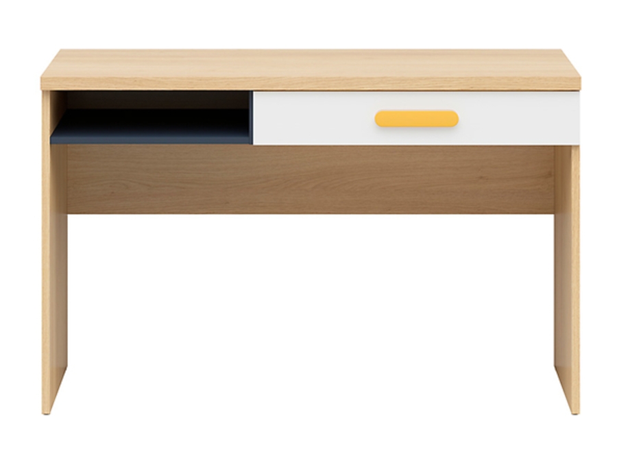 Бюро Вексер BIU1S е изработено от висококачествен материал пдч, което гарантира здравина, устойчивост и лесна поддръжка. Ширината от 120 сантиметра предлага комфортно пространство за лаптоп, документи и ежедневни принадлежности, докато дълбочината от 59 сантиметра създава удобна работна зона. Височината от 75.5 сантиметра осигурява правилна поза на тялото при работа или учене. Моделът разполага с едно практично чекмедже, което позволява подреждане и съхранение на дребни предмети и офис аксесоари, за да бъде всичко под ръка и добре организирано.