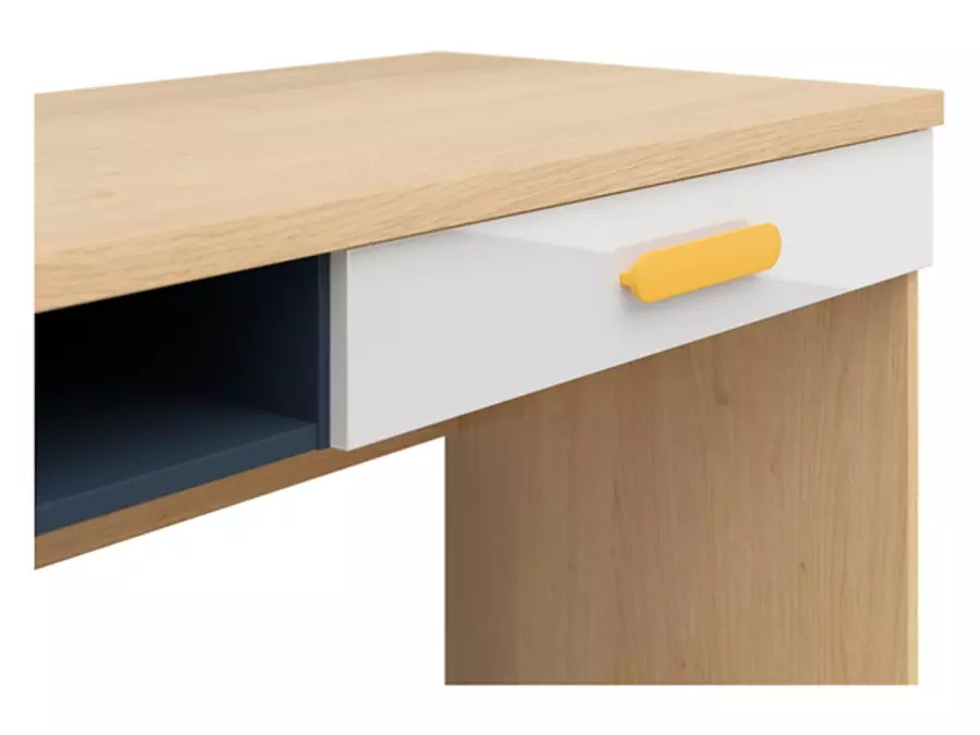 Бюро Вексер BIU1S е практично и функционално решение за домашен офис или учебно пространство, създадено да осигури комфорт и добра организация на работния процес. Моделът се отличава с изчистен и модерен дизайн, който лесно се съчетава с различни интериорни стилове. Благодарение на компактните си размери, то предоставя достатъчно работна площ, без да натоварва помещението.