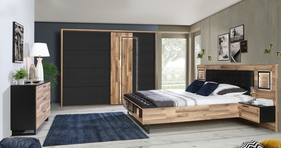 Спалният комплект СИРИУС е идеален за модерни жилища, където стилът и удобството са от първостепенно значение. С изчистените си линии и съвременен дизайн, той се вписва перфектно както в минималистични, така и в по-луксозни интериорни решения.