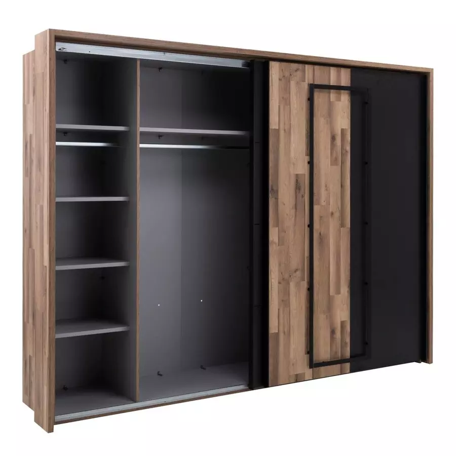 Гардеробът в комплекта СИРИУС е проектиран с оглед на практичността. Той предлага достатъчно място за съхранение, с прецизно разпределени вътрешни рафтове и лостове за дрехи, което ще ви позволи лесно да организирате своя гардероб. За допълнителна функционалност и още повече място за съхранение, имате възможността да добавите и скрин към комплекта. Скринът се предлага като допълнителен артикул и ще завърши цялостната визия на вашата спалня.