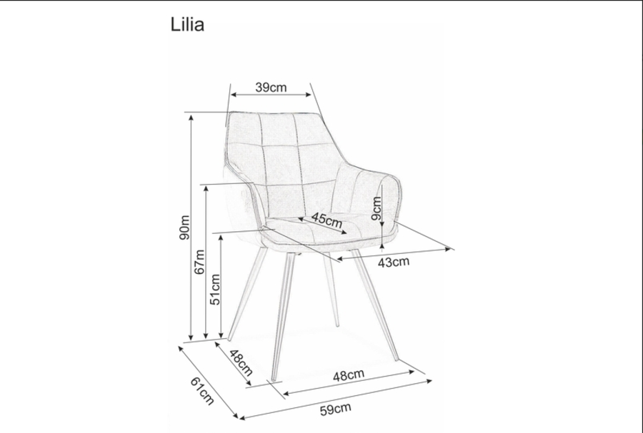 Кресло ЛИЛИЯ съчетава модерен дизайн и изключителен комфорт, което го прави стилно допълнение към всеки интериор. Седалката и облегалката са тапицирани с висококачествена кадифена дамаска, осигуряваща мекота и изисканост. Ергономичната форма и подлакътниците предоставят отлична подкрепа за тялото, като създават усещане за уют и релаксация. Здравите метални крака в черен цвят гарантират стабилност и надеждност, като креслото е проектирано да издържа натоварване до 120 кг. Идеално за жилищни и офис пространства, кресло ЛИЛИЯ е съчетание от елегантност, практичност и дълготрайност.