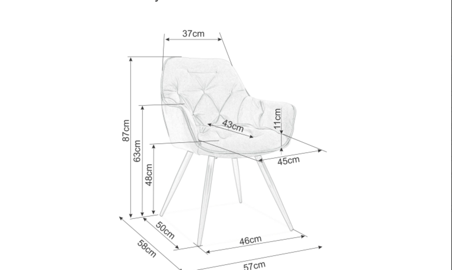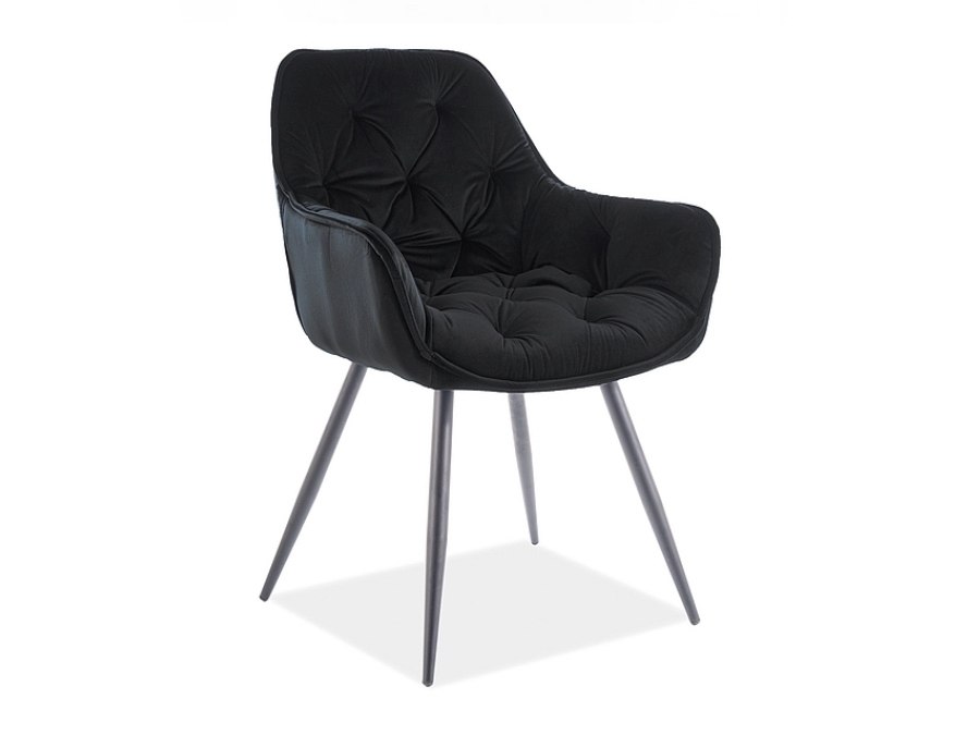 Кресло ЧЕРИ е елегантно и функционално допълнение към съвременния интериор. Със здрава метална основа в черно матово покритие, то осигурява изключителна стабилност и дълготрайност. Ергономичната седалка и облегалка са тапицирани с висококачествена материя, която е устойчива на износване и лесна за поддръжка. Компактните му размери и универсалният дизайн го правят идеално решение за хола, трапезарията или работния кът.