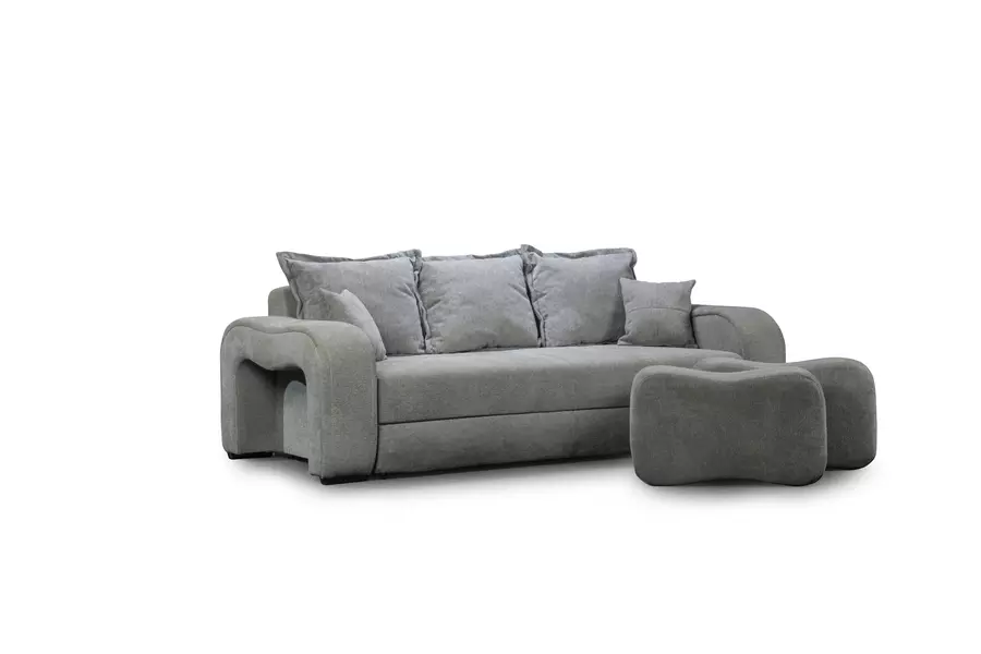 Разтегателен диван МОНАКО с функция сън и две табуретки.