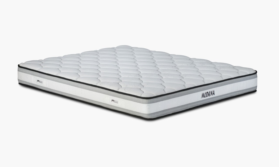 При двулицев матрак МОДЕНА, слоевете SUPER SOFT ELASTIC FOAM повишават ергономичността на PENO ELASTIC FOAM сърцевината. Антиалергичните силиконизирани влакна, в комбинация с текстил CASHMERE в прошивката, галят сетивата. Отворената клетъчна и дишаща структура на селектираните материали спомагат вентилацията в дълбочина и при повишена здравина.