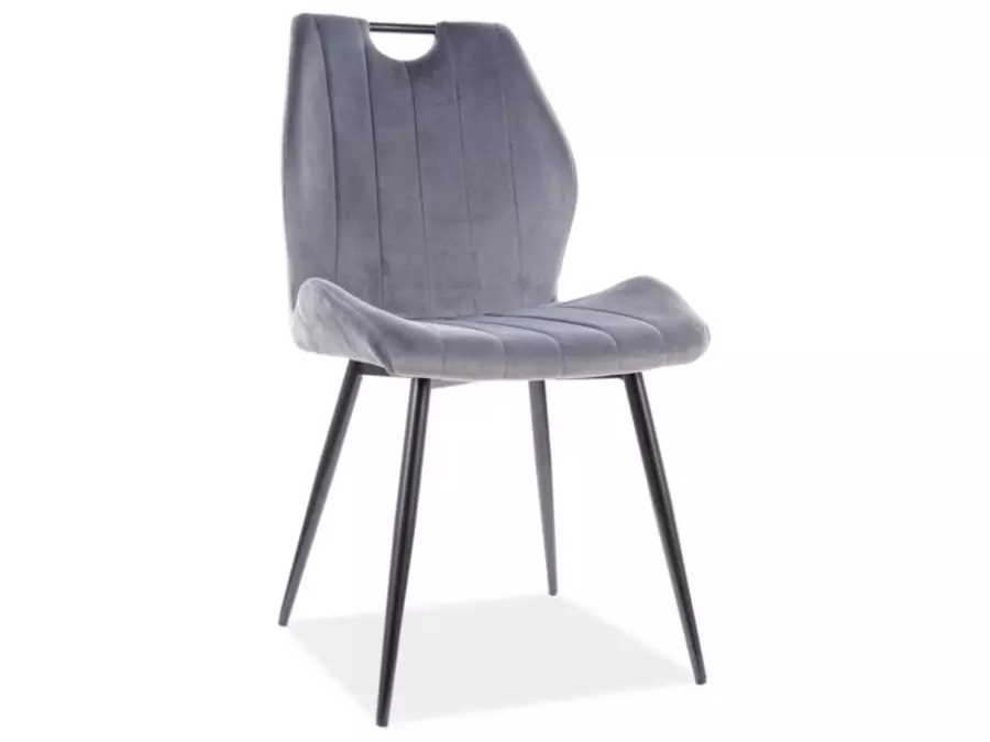 Трапезен стол АРКО е съчетание от модерен дизайн и практичност. Седалката от пяна, облечена с висококачествен текстил, и прави шевове създават стилна визия и комфорт. Черните метални крака със защитни тапички осигуряват стабилност и предпазват пода от надраскване. Максималното натоварване е 120 кг, което го прави издръжлив и подходящ за трапезарии, всекидневни и други съвременни интериори.