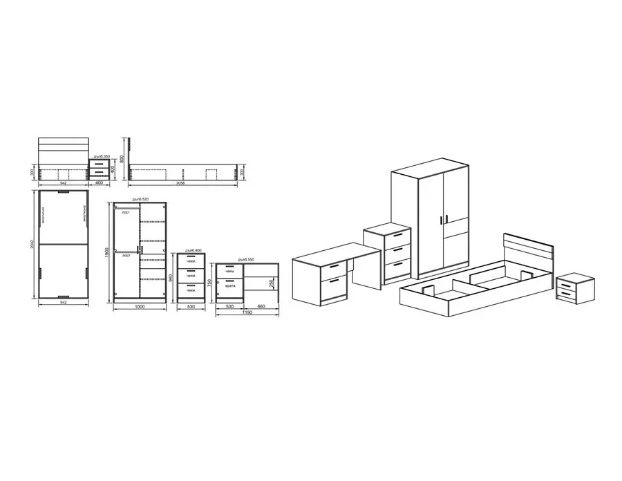 – Гардероб : 1000 / 525 / 2910
