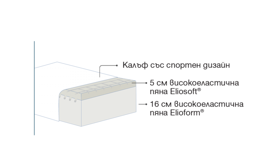 Пяната Elioform е с висока ортопедичност и издръжливост. Предоставя правилна опора на тялото по време на сън и запазва гръбнака в изправена позиция.