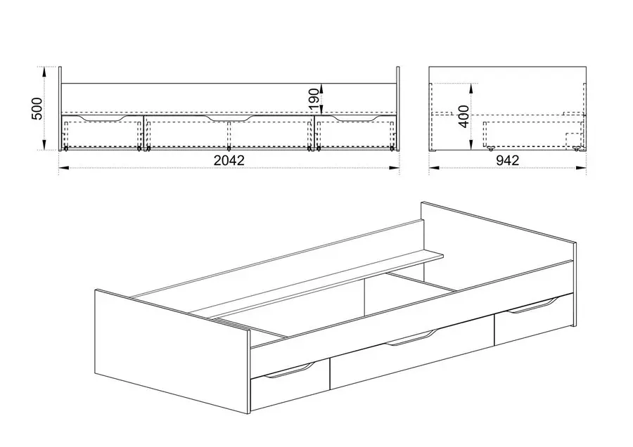 Легло Сити 2029 е предназначено за еднолицев матрак 90/200 без матрак с размери: