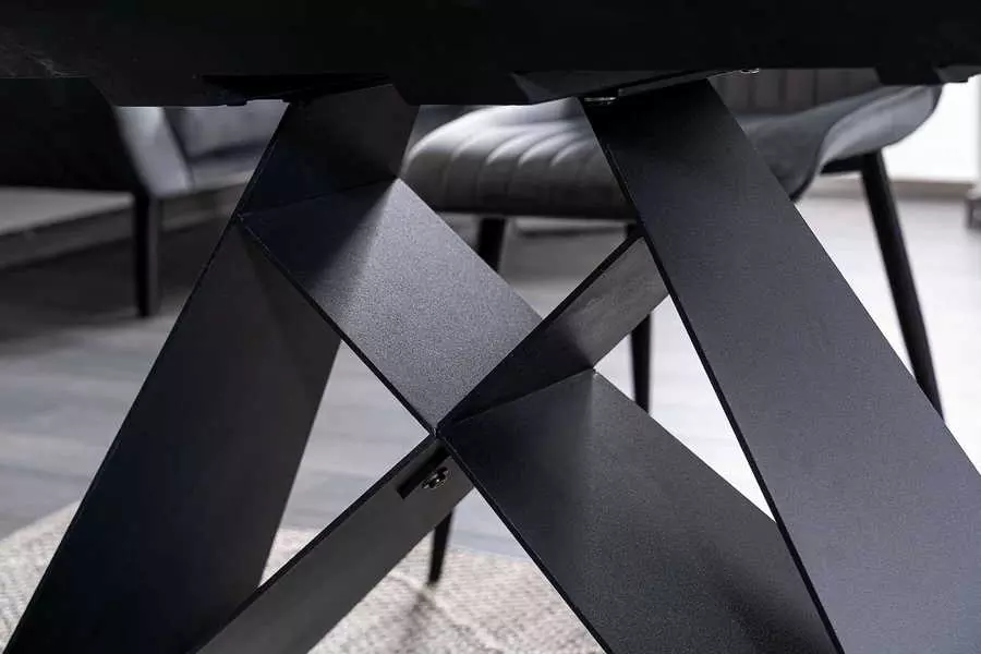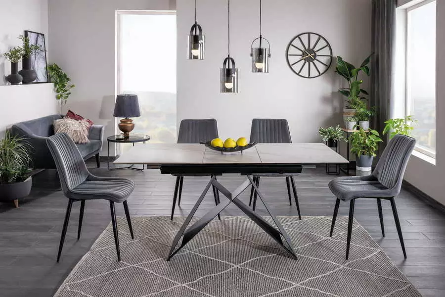 Металната основа на масата, оформена в геометрична форма, добавя модерен акцент и гарантира стабилност. Разтегателният механизъм предоставя гъвкавост, като позволява лесно разширяване за повече гости, без да прави компромис със стила или устойчивостта на масата.Трапезна маса УЕСТИН SC е перфектен избор за онези, които ценят съвременния дизайн и висококачествените материали. Тя съчетава практичност и изисканост, което я прави идеалното допълнение към всеки модерен дом или стилна трапезария.