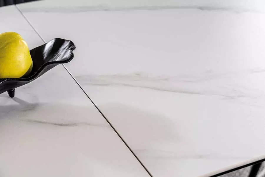 Трапезна маса УЕСТИН SC впечатлява със своя съвременен дизайн и изключителна функционалност. Изработена с внимание към детайла, масата разполага с керамичен плот и закалено стъкло, който съчетава естетика и практичност. Повърхността на плота от мраморен ефект придава елегантност и издръжливост.