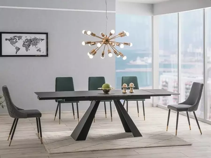 Трапезна маса САЛВАДОРЕ впечатлява със своя изискан дизайн и съвършена функционалност, съчетавайки стил и практичност. Изработена с внимание към всеки детайл, масата разполага с плот от стъкло и италианска керамика, който добавя изтънченост и устойчивост. Материалите, използвани за изработката, гарантират дълготрайност и лесна поддръжка, което я прави отличен избор за всяка трапезария.
