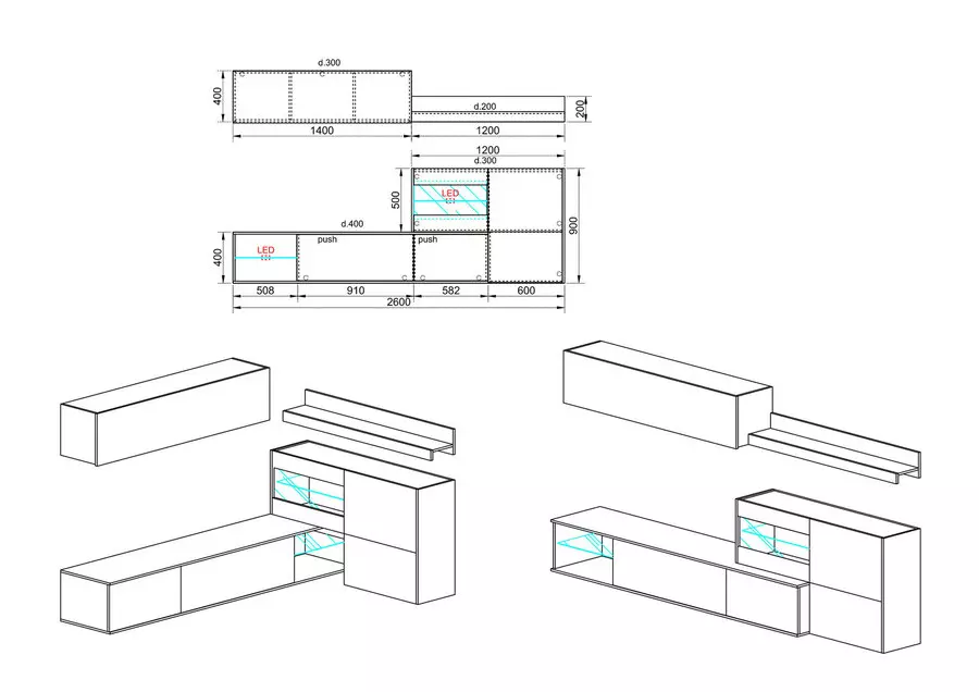 Секция Сити 6056 е ултра модерно и функционално предложения за Вашата дневна. Допълнителната функция на тази секция е че става и за ъглов монтаж. Снабдена е с лед осветление на стъклените рафтове, което придава допълнителен естетически акцент.