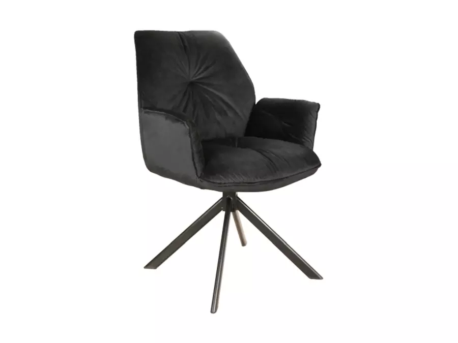 Черните крака на креслото подчертават елегантния му и съвременен стил, като същевременно осигуряват здравина и устойчивост. Уникалната функция за въртене на седалката на 180 градуса, съчетана с механизъм за автоматично връщане в изходна позиция, прави креслото не само стилно, но и изключително практично. Конструкцията е проектирана така, че да издържа натоварване до 120 кг, което гарантира надеждност и дълготрайна употреба. Това кресло е идеално за създаване на уют и комфорт в дневната, спалнята или офис пространството.