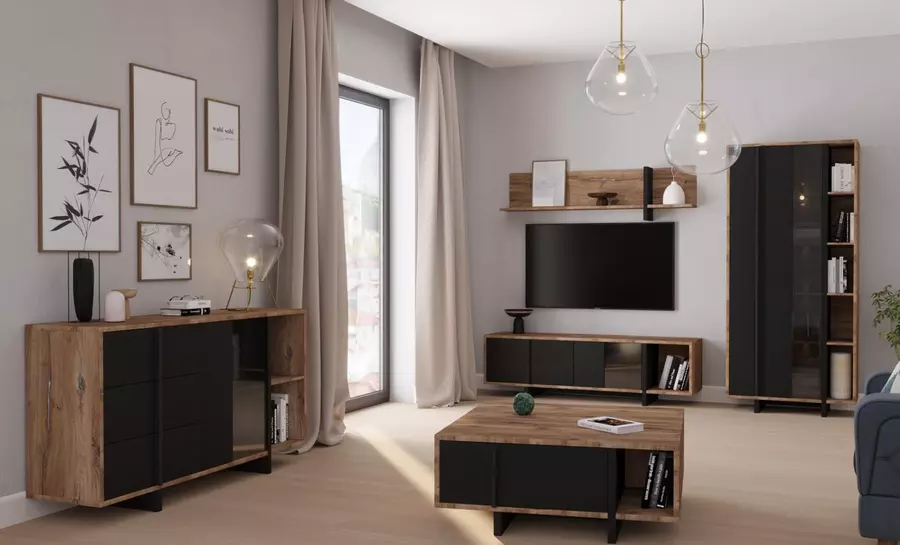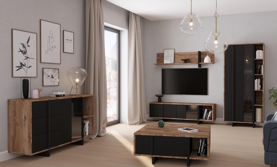 Комплектът за обзавеждане на всекидневна "ДЖОКАЗ" е съвършено съчетание от стил, функционалност и качество. Състои се от три основни елемента: ТВ шкаф, витрина и полица, които са проектирани да се допълват перфектно, създавайки модерна и елегантна обстановка във вашия дом.