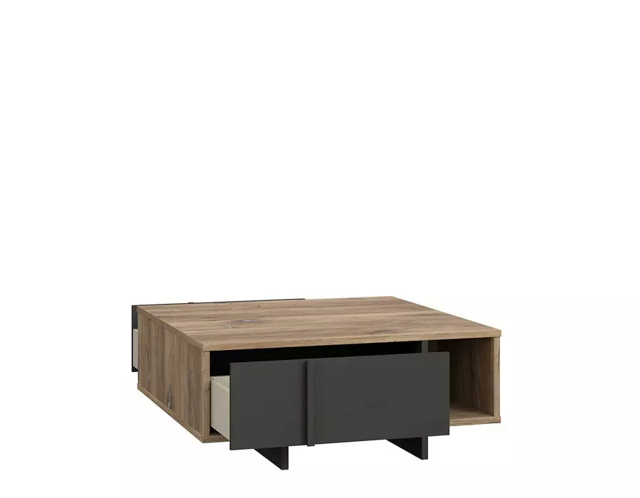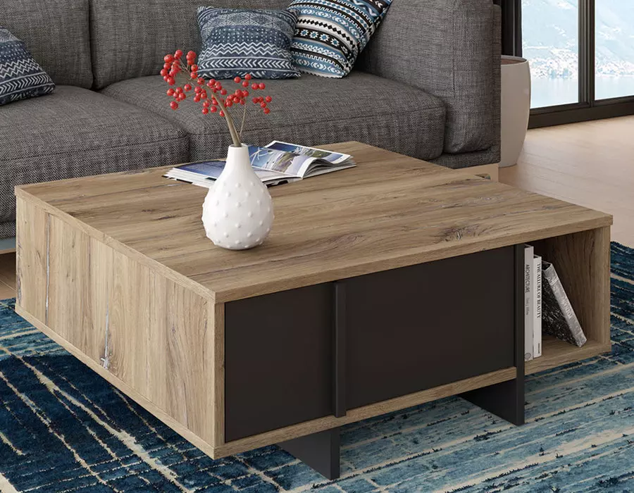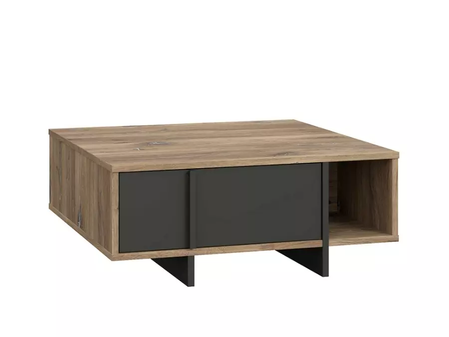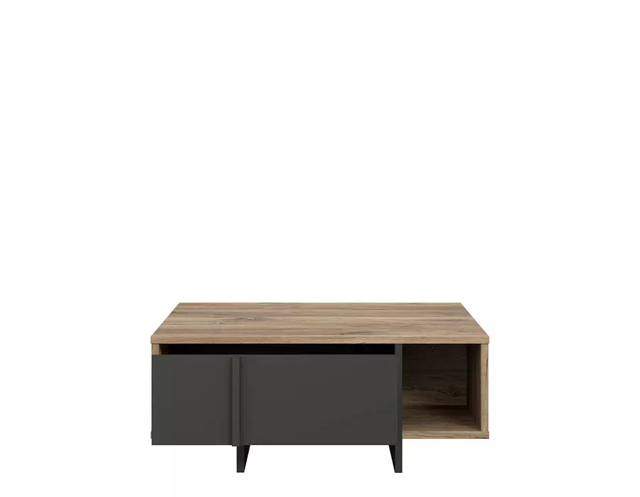 Холна маса ДЖОКАЗ е прекрасно съчетание на стил и практичност, което ще придаде елегантност на всяка всекидневна. Изработена от висококачествено 18 мм ламинирано ПДЧ, тя гарантира дълготрайност и устойчивост на износване. Дизайнът ѝ комбинира натурален дървесен финиш с модерни черни акценти, което я прави лесно съвместима с различни интериорни стилове.