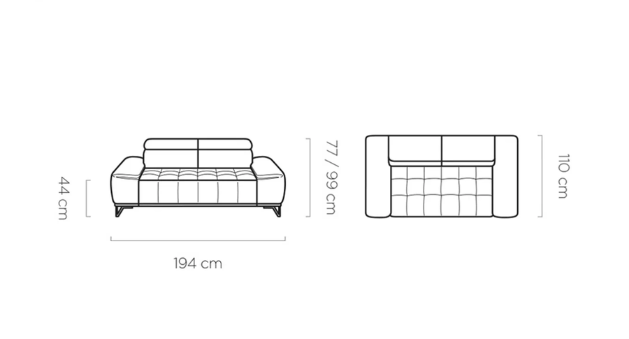 Диван 2-ка Паладио с електрическа функция за регулиране дълбочината на седалката и регулируеми подглавници.